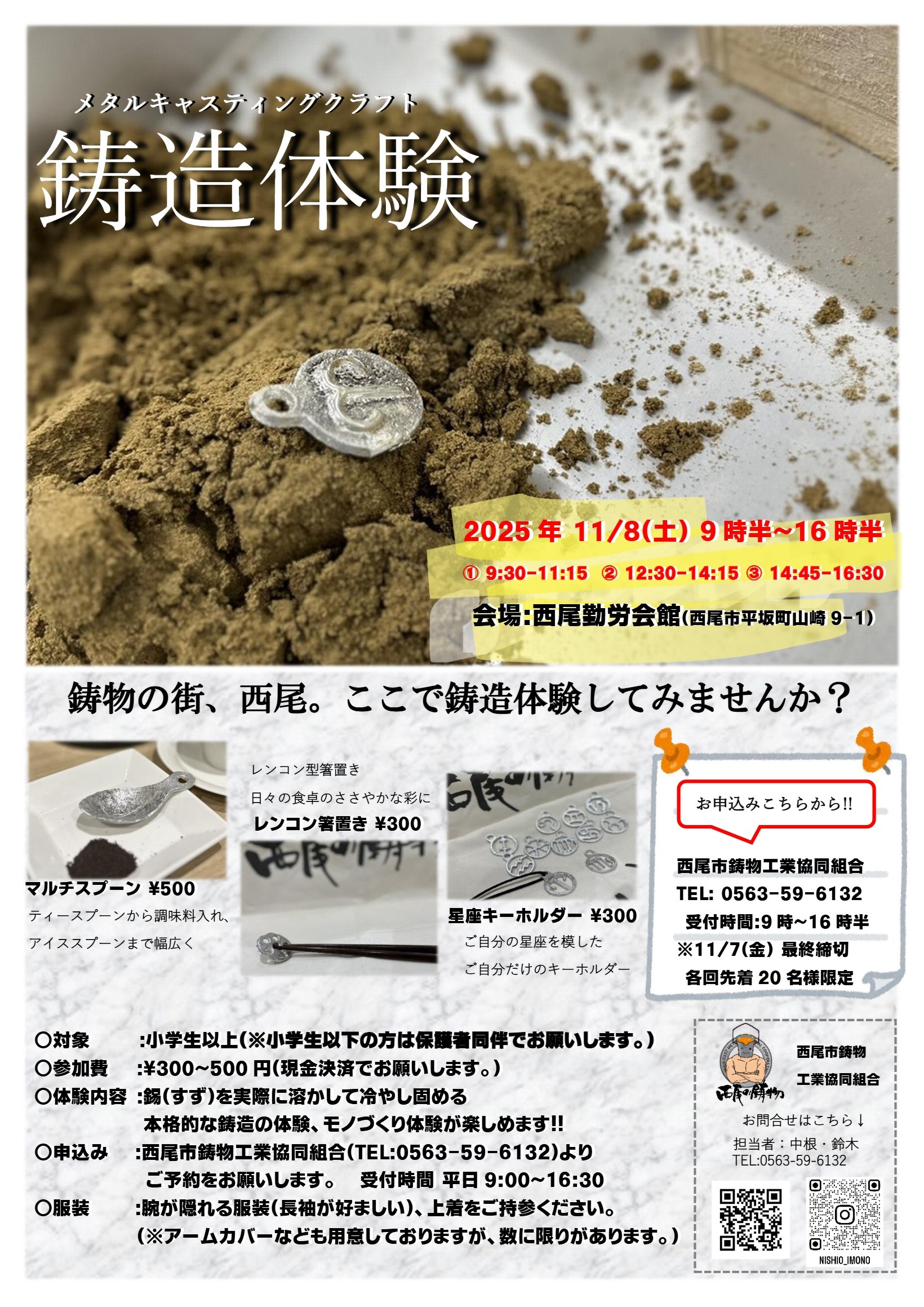 日時は2025年11月8日(土)。なんでもこの日は鋳物(いもの)の日だとか!